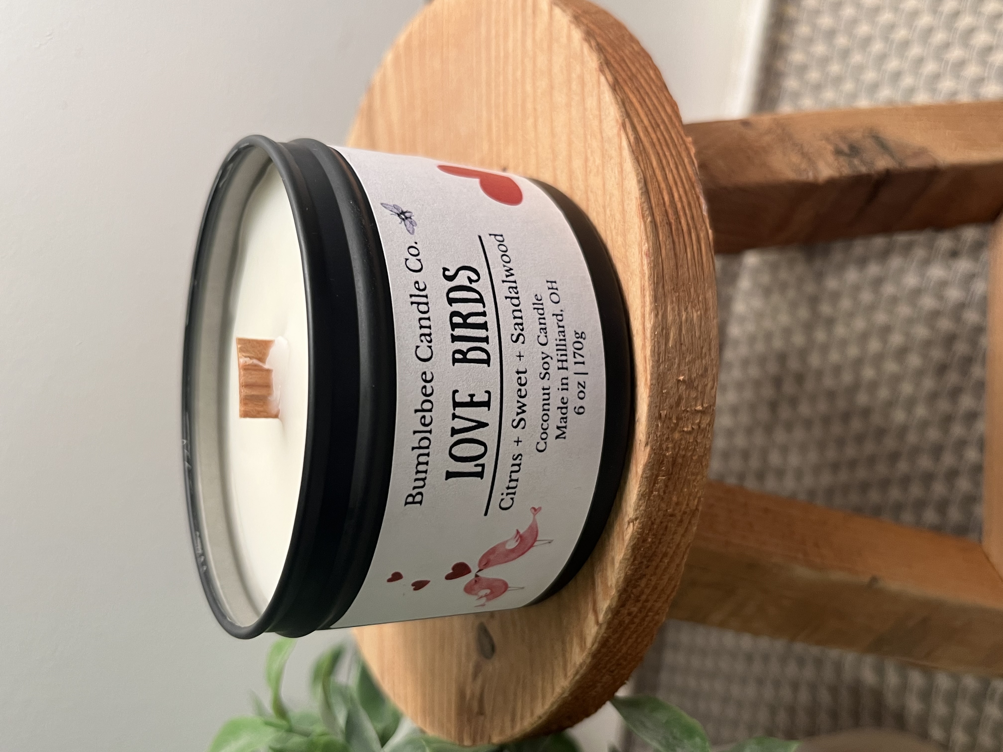 Each Tin candle is filled with coconut soy wax, clean fragrance oil and crackling wood wick! 6 oz |170g has rubber dots on the bottom of candle to protect all surfaces. Container can be re-purposed once the wax melts down! Makes a great gift or keep for yourself!