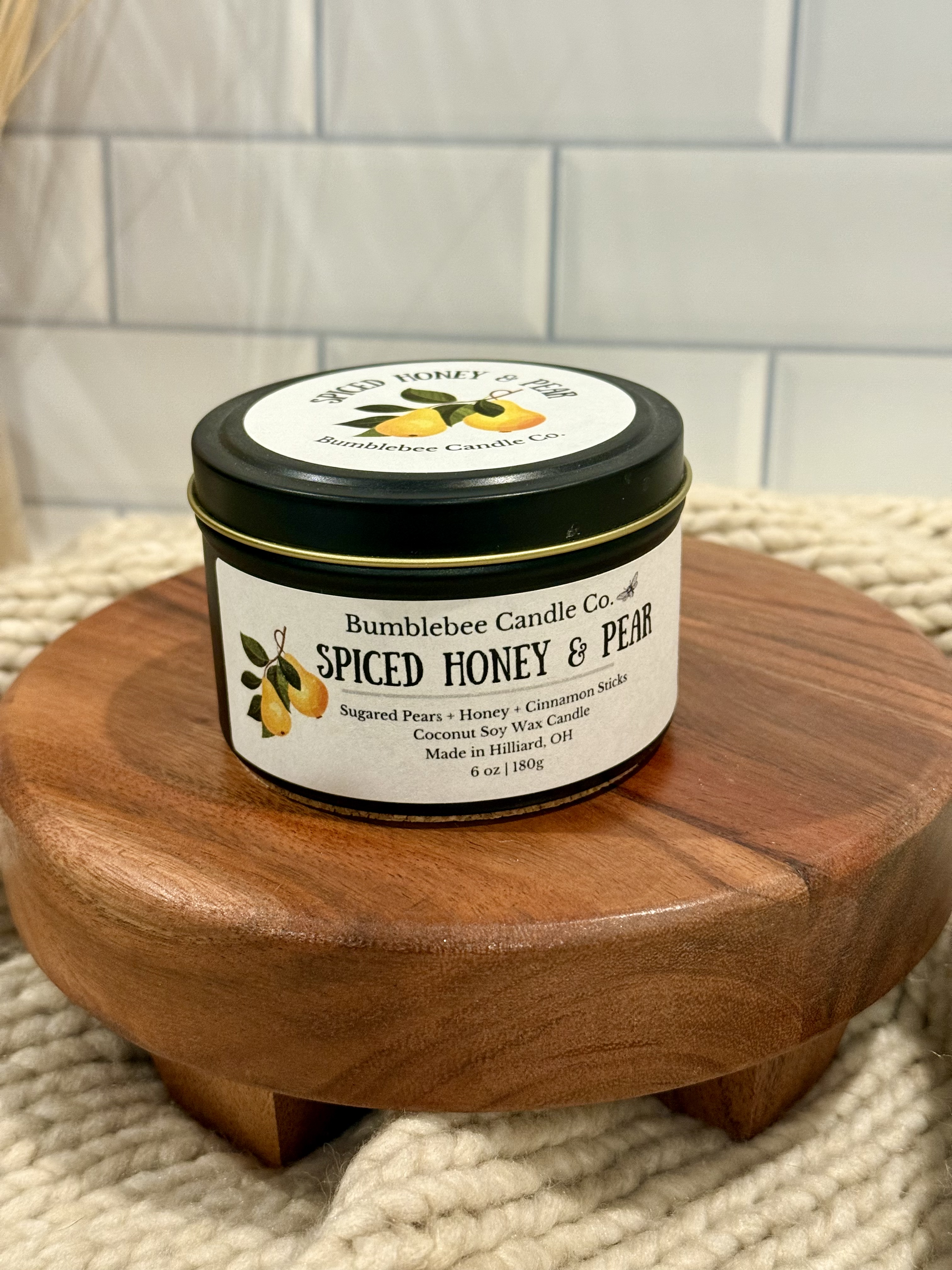 Fill your space with the warm, inviting aroma of Spiced Honey & Pear. This candle opens with the sweet, juicy scent of sugared pears, gently drizzled with golden honey. Hints of cinnamon sticks add a cozy spice that brings depth and warmth without overpowering the sweetness.