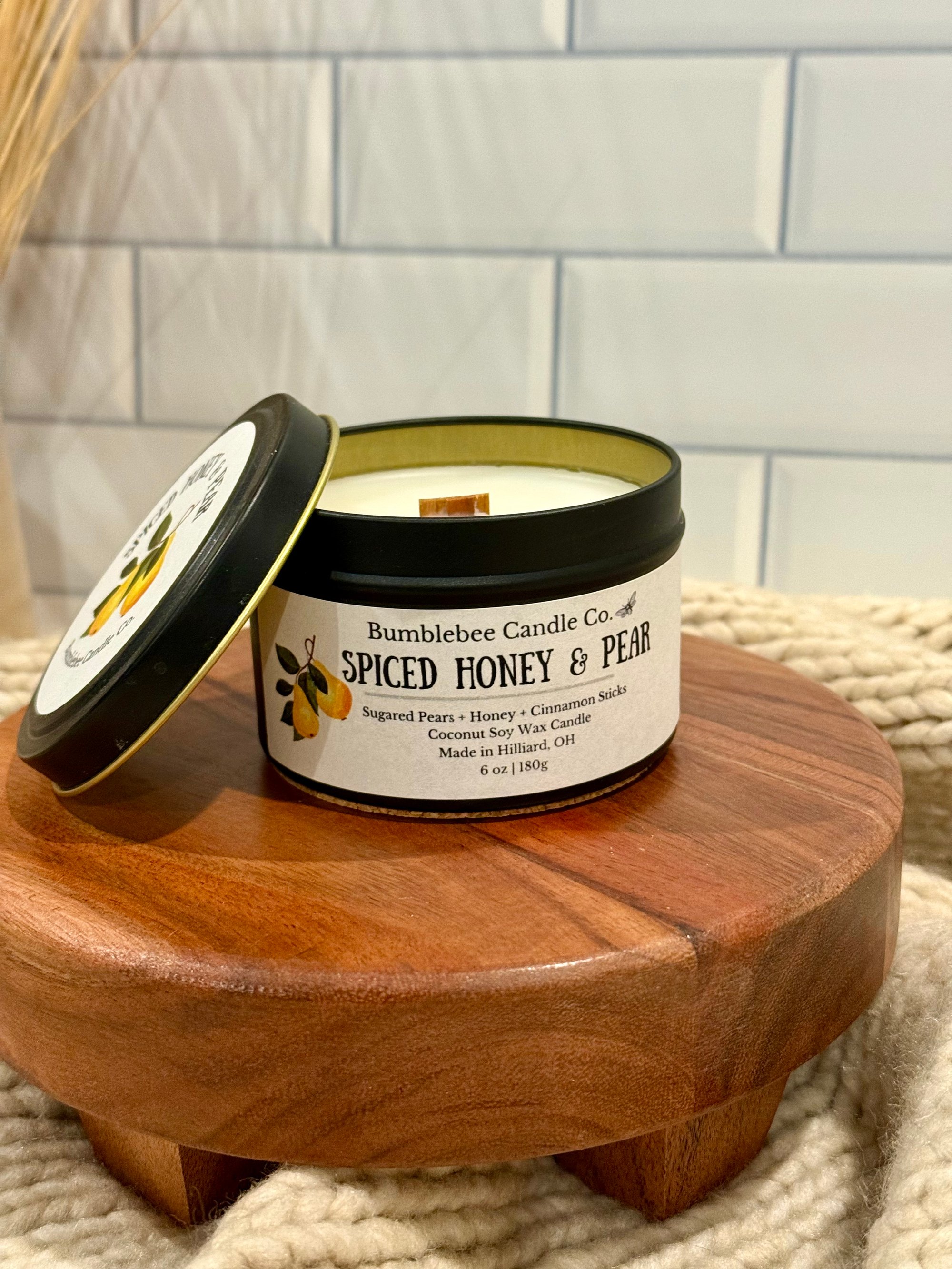 Spiced Honey & Pear - Sugared Pears, Honey & Cinnamon Sticks | 6 oz Tin Candle